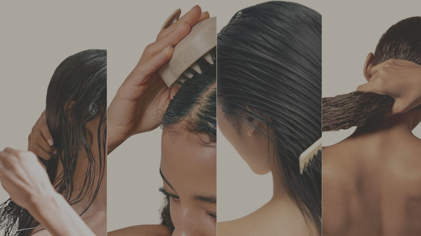 Versez quelques gouttes d'huile de pousse directement sur votre cuir chevelu, puis massez du bout des doigts ou avec une brosse de massage.